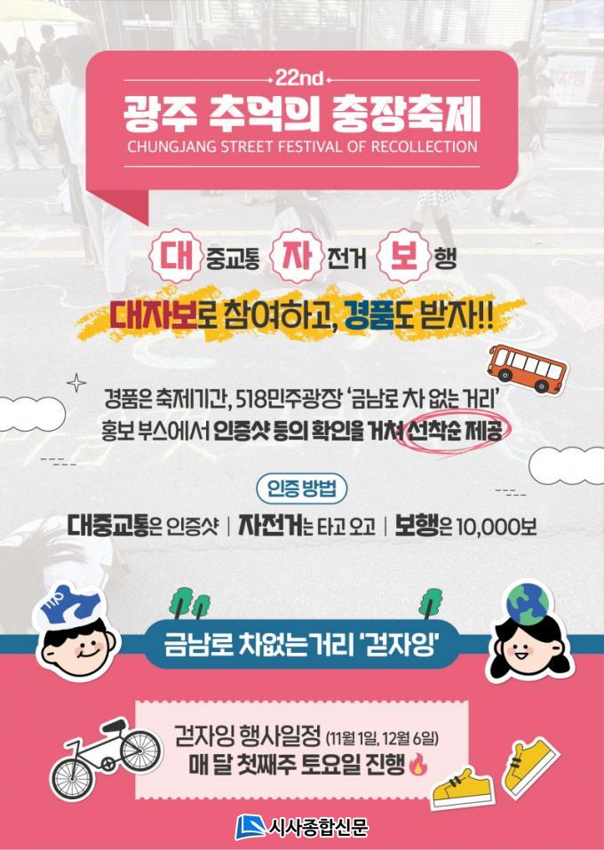 À̸¦ À§ÇØ ±¤ÁÖ±¤¿ª½Ã¿Í ¼ÕÀâ°í 5¡¤18 ¹ÎÁÖ±¤Àå¿¡¼ È«º¸ ºÎ½º¸¦ ¿î¿µÇÑ´Ù. À̰÷¿¡¼´Â ±Ý³²·Î Â÷ ¾ø´Â °Å¸® »ç¾÷ÀÇ Çʿ伺°ú ±×µ¿¾È ÃßÁø ¼º°ú¸¦ È¿°úÀûÀ¸·Î È«º¸Çϱâ À§ÇØ ¡ãÆ÷ÅäÁ¸ À̺¥Æ®(Æ÷ÅäÁ¸¿¡¼ ÂïÀº »çÁøÀ» SNS¿¡ ¿Ã¸®¸é °æÇ°À» ¼±Âø¼øÀ¸·Î Á¦°ø) ¡ã´ëÀÚº¸ ½Çõ À̺¥Æ®(´ëÁß±³Åë, ÀÚÀü°Å, º¸ÇàÀ» ÀÌ¿ëÇØ Âü¿©ÇÑ ¹æ¹®°´¿¡°Ô ¼±Âø¼øÀ¸·Î °æÇ° ÁõÁ¤) µîÀ» ÁøÇàÇÑ´Ù.