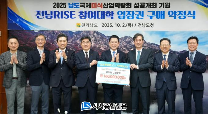 [½Ã»çÁ¾ÇսŹ® = ¿À½ÂÅà ±âÀÚ] Àü¶ó³²µµ´Â 2ÀÏ µµÃ» Á¢°ß½Ç¿¡¼ Àü³²RISE Âü¿©´ëÇÐ ÃÑÀå´Ü°ú ÇÔ²² ¡®2025 ³²µµ±¹Á¦¹Ì½Ä»ê¾÷¹Ú¶÷ȸ ÀÔÀå±Ç ±¸¸Å ¾àÁ¤½Ä¡¯À» °³ÃÖÇß´Ù.
