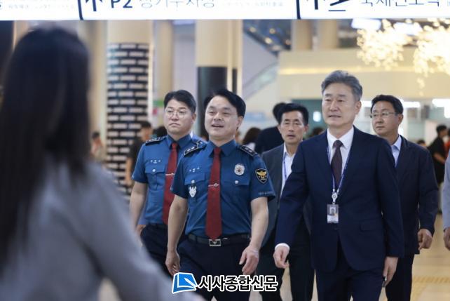 °íÆò±â ûÀåÀº °øÇ× ³» È¥Àâ »óȲ°ú ±³ÅëÁú¼ À¯Áö, ¹üÁË ¿¹¹æÈ°µ¿À» Á÷Á¢ Á¡°ËÇϰí, Á¦ÁÖ°øÇ×°ø»ç »óȲ½ÇÀ» ¹æ¹®ÇÏ¿© °øÇ×°ø»ç Á÷¿øµéÀ» °Ý·ÁÇß´Ù.