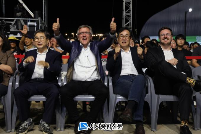 ÇÑÆí, Å丶½º ±×¸®½º ±³¼ö´Â °£´ãȸ ÀÌÈÄ ¡®2025 ³ªÁÖ¿µ»ê°ÃàÁ¦¡¯°¡ ¿¸®°í ÀÖ´Â ¿µ»ê°Á¤¿øÀ» ¹æ¹®ÇØ °»ó±¸ ºÎ½ÃÀå°ú ÇÔ²² Á¤¿øÀ» µÑ·¯º¸°í Àú³á °ø¿¬À¸·Î ¿¸° ÄÉÀÌÆË ÄܼƮ¸¦ °ü¶÷Çϸç ÃàÁ¦ ºÐÀ§±â¸¦ Áñ°å´Ù.