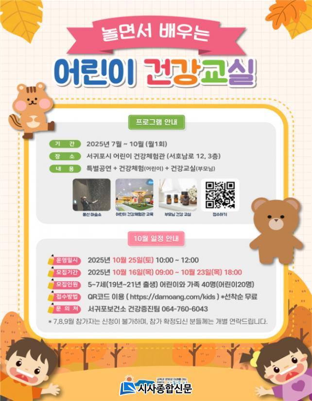 ¾î¸°ÀÌ °Ç°±³½ÇÀº ÁÖ¸»¿¡µµ ¾î¸°À̵éÀÌ °¡Á·°ú ÇÔ²² ´Ù¾çÇÑ ³îÀÌ¿Í Ã¼ÇèÀ¸·Î °Ç°¿¡ ´ëÇØ Àç¹ÌÀÖ°Ô ¹è¿ï ¼ö ÀÖµµ·Ï ¾î¸°ÀÌ °Ç°Ã¼Çè°üÀÇ ´Ù¾çÇÑ ½Ã¼³À» Ȱ¿ëÇÏ¿© 7¿ùºÎÅÍ 10¿ù±îÁö ¿ù 1ȸ ¿î¿µÇÏ´Â ÇÁ·Î±×·¥ÀÌ´Ù.