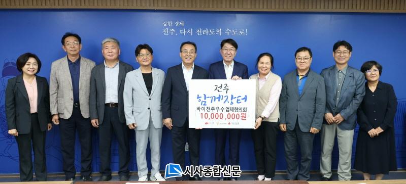 ¹ÙÀÌÀüÁÖ¿ì¼ö¾÷üÇùÀÇȸ(ȸÀå Àü»ó¹®)´Â 16ÀÏ ÀüÁÖ½ÃÀå½ÇÀ» ¹æ¹®ÇØ ¡®ÀüÁÖÇÔ²²ÀåÅÍ¡¯ ±âºÎ±Ý 1000¸¸ ¿øÀ» Àü´ÞÇß´Ù. À̹ø ±âºÎ±ÝÀº Áö³ 4¿ù ¿¸° ÀÌÆË³ª¹« ÀåÅÍ¿Í Áö³´Þ ÀüÁÖ¿ùµåÄŰæ±âÀå¿¡¼ ÆîÃÄÁø ¡®2025 ¹ÙÀÌÀüÁÖ GOGO Æä½ºÆ¼¹ú¡¯ÀÇ ÆÇ¸Å¼öÀͱÝÀ¸·Î ¸¶·ÃÇÑ °ÍÀÌ´Ù.