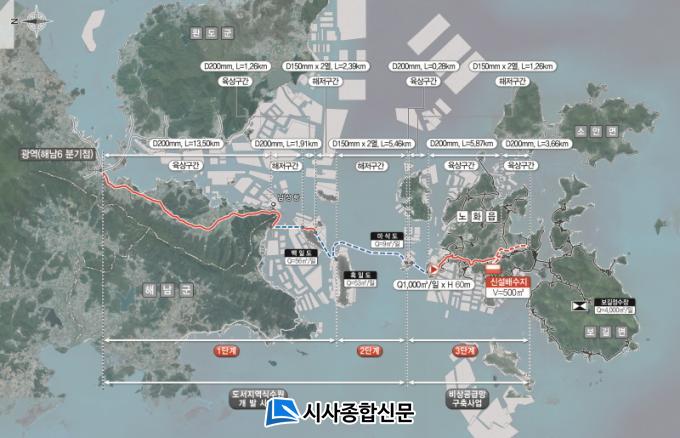 »ç¾÷Àº ±¤¿ª »ó¼öµµ¸¦ ÇØ³² ºÐ±âÁ¡¿¡¼ ³ëÈÀ¾±îÁö »ó¼ö °ü·Î 31.1§°(À°»ó °ü·Î 21.9§°, ÇØÀú °ü·Î 9.2§°), ¹è¼öÁö 1°³¼Ò, °¡¾ÐÀå 2°³¼Ò µî ½Ã¼³ ¿ë·® 1,000§©/ÀÏÀÇ ½Ã¼³À» ¼³Ä¡ÇÑ´Ù.
