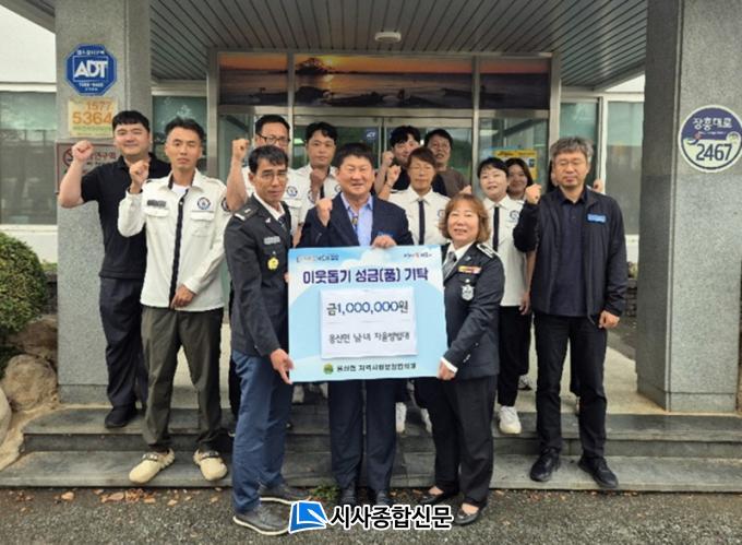 [½Ã»çÁ¾ÇսŹ® = ¿À½ÂÅà ±âÀÚ] ÀåÈﱺ ¿ë»ê¸é ³²³à ÀÚÀ²¹æ¹ü´ë(´ëÀå ¹é°èÇö, ±èÀº¹Ì)°¡ Áö¿ª»çȸ ÀÌ¿ôÀ» À§ÇÑ µû¶æÇÑ ¸¶À½À» ÀüÇϸç 100¸¸ ¿øÀ» ±âºÎÇß´Ù.