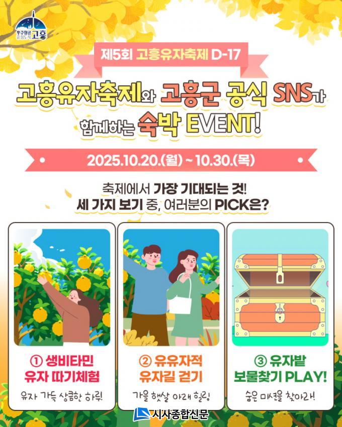 À̹ø À̺¥Æ®´Â Á¦5ȸ °íÈïÀ¯ÀÚÃàÁ¦ÀÇ ¼º°øÀûÀÎ °³ÃÖ¿Í °íÈﱺ °ø½Ä SNS Ȱ¼ºÈ ¹× Àü±¹ÀÇ °ü±¤°´µéÀÌ °íÈïÀÇ Ã»Á¤ ÀÚ¿¬°ú ¸ÀÀÖ´Â À½½Ä µî ´Ù¾çÇÏ°Ô °íÈïÀ» Áñ±æ ¼ö ÀÖ´Â ±âȸ¸¦ Á¦°øÇϱâ À§ÇØ ¸¶·ÃµÆ´Ù. Âü¿©ÀÚ Áß 14¸íÀ» ÃßÃ·ÇØ °íÈï ¹Ù´ÙÀÇ ¾Æ¸§´Ù¿î ¿À¼Çºä¸¦ ÀÚ¶ûÇÏ´Â °íÈï½ã¹ë¸®¸®Á¶Æ® ¼÷¹Ú±Ç(Á¶½Ä Æ÷ÇÔ)À» ÁõÁ¤ÇÑ´Ù.