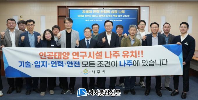À±º´Å ³ªÁÖ½ÃÀåÀº ¡°À̹ø °£´ãȸ¸¦ ÅëÇØ Á¤ºÎÀÇ Â÷¼¼´ë Àü·Â¸Á(K-±×¸®µå) Á¤Ã¥¿¡ ºÎÇÕÇÏ´Â Áö¿ª ´ëÀÀ Àü·«°ú ±¸Ã¼Àû ½ÇÇà °úÁ¦¸¦ ¿¡³ÊÁö °ø°ø±â°ü°ú ¿¬±¸±â°ü, ´ëÇÐ µî Áö¿ª Çõ½Å ÁÖüµéÀÌ ÇÑÀÚ¸®¿¡ ¸ð¿© ³íÀÇÇÑ ¶æ±íÀº ÀÚ¸®¿´´Ù¡±°í ¸»Çß´Ù. ÀÌ¾î ¡°³íÀÇµÈ °úÁ¦¸¦ ±¸Ã¼ÈÇØ Á¤ºÎ Á¤Ã¥¿¡ ¹Ý¿µÇÏ°í »ç¾÷È ÃßÁøÀ¸·Î À̾ ³ªÁÖ°¡ Â÷¼¼´ë Àü·Â»ê¾÷ÀÇ Á߽ɵµ½Ã·Î µµ¾àÇϵµ·Ï ÃÖ¼±À» ´ÙÇϰڴ١±°í µ¡ºÙ¿´´Ù.