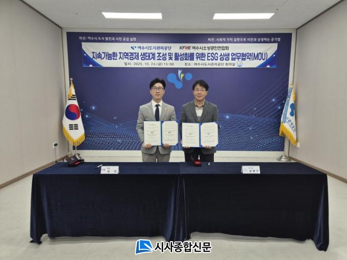 ¿©¼ö½Ãµµ½Ã°ü¸®°ø´Ü ÀÌ»çÀåÀº ¡°¿©¼ö½Ã ¼Ò»ó°øÀÎ ¿¬ÇÕȸ¿Í À̹ø Çù¾à ü°á·Î Áö¿ª ¼Ò»ó°øÀεé°ú ÇÔ²² ¹ßÀüÇØ ³ª°¥ ¼ö ÀÖ´Â »ó»ý °æ¿µ ü°è¸¦ ±¸ÃàÇϰí, Áö¼Ó°¡´ÉÇÑ ESG °æ¿µ ¹× °æÁ¦ Ȱ¼ºÈ ÃßÁøÀ» À§ÇØ ³ë·ÂÇϰڴÙ.¡±°í ¸»Çß´Ù.