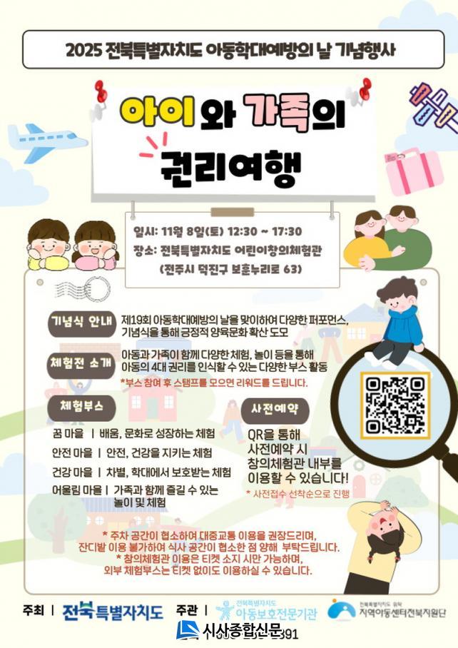 À̹ø 2025 ¾Æµ¿Çд뿹¹æÀÇ ³¯ ±â³ä½Ä°ú ¾Æµ¿±Ç¸®Ã¼ÇèÀüÀº ¾Æµ¿Çд뿹¹æÀÇ ³¯À» ±â³äÇÏ¿© ¿¹¹æÈ°µ¿À» ÃßÁøÇÑ ´ëÀÀÀηÂÀÇ ³ë°í¸¦ Ä¡ÇÏÇϰí, µµ¹Î¿¡°Ô °¡Á·Ã¼ÇèÇÁ·Î±×·¥À» Á¦°øÇÏ¿© ¾Æµ¿±Ç¸® ÀνÄÀ» Çâ»ó½Ã۱â À§ÇØ ¸¶·ÃµÈ Çà»çÀÌ´Ù.