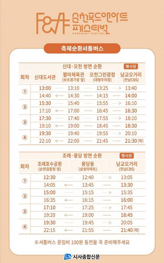À̹ø ÃàÁ¦¿¡¼´Â ½Ã¹Î À̵¿ ÆíÀǸ¦ À§ÇØ ¡®100¿ø ÃàÁ¦ ¼ÅƲ¹ö½º¡¯¸¦ óÀ½À¸·Î ¿îÇàÇÑ´Ù. ¼ÅƲÀº ½Å´ë ¹æ¸é, ¿Àõ ¹æ¸é, Á¶·Ê¡¤¿ë´ç ¹æ¸éÀÇ ¼øÈ¯³ë¼±À¸·Î ¿î¿µµÇ¸ç, ÀÌ¿ë¿ä±ÝÀº 100¿øÀ¸·Î ½Ã¹Î°ú °ü±¤°´ ´©±¸³ª ºÎ´ã ¾øÀÌ ÀÌ¿ëÇÒ ¼ö ÀÖ´Ù.