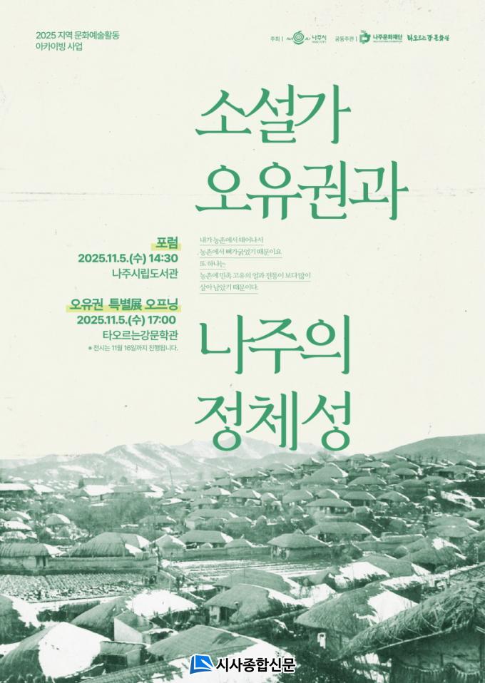 ³ªÁÖ¹®ÈÀç´Ü(ÀÌ»çÀå À±º´ÅÂ)Àº ¿À´Â 11¿ù 5ÀÏ ³ªÁֽø³µµ¼°ü°ú Ÿ¿À¸£´Â°¹®Çаü ÀÏ´ë¿¡¼ ¡®¼Ò¼³°¡ ¿ÀÀ¯±Ç°ú ³ªÁÖÀÇ Á¤Ã¼¼º¡¯À» ÁÖÁ¦·Î Æ÷·³, Àü½Ã, ¹®ÇÐ Åõ¾î¸¦ °³ÃÖÇÑ´Ù°í 27ÀÏ ¹àÇû´Ù.