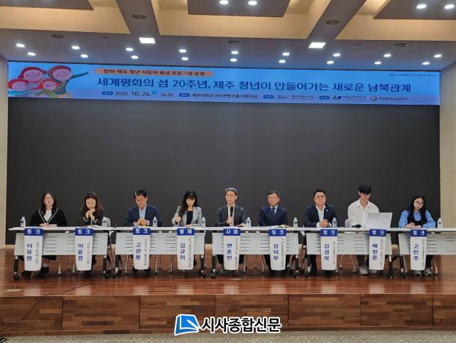 '¼¼°èÆòÈÀÇ ¼¶ 20ÁÖ³â, Á¦ÁÖ Ã»³âÀÌ ¸¸µé¾î°¡´Â »õ·Î¿î ³²ºÏ°ü°è'¶ó´Â ÁÖÁ¦·Î ÁøÇàµÈ À̳¯ Çà»ç´Â Á¦ÁÖÁö¿ª ´ëÇлý ¹× û³â, ÅëÀϰü·Ã Àü¹®°¡,Áö¿ª ÁֹΠµîÀÌ Âü¿©ÇØ ÅëÀÏ ¹Ì·¡¼¼´ëÀÇ ÆòÈ¡¤ÅëÀÏÀǽÄÀ» Át¾çÇϱâ À§ÇÑ ´ë¾ÈÀ» ¸ð»öÇϱâ À§ÇÏ¿© ¸¶·ÃµÆ´Ù.