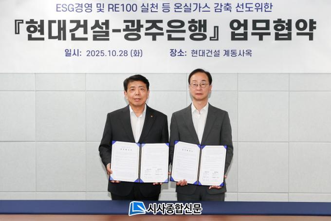 ±¤ÁÖÀºÇàÀº Çö´ë°Ç¼³°ú ¡®ESG°æ¿µ ¹× RE100 ½Çõ µî ¿Â½Ç°¡½º °¨Ãà ¼±µµ À§ÇÑ ¾÷¹«Çù¾à¡¯À» ü°áÇß´Ù°í 29ÀÏ ¹àÇû´Ù. Çù¾à½ÄÀº Çö´ë°Ç¼³ º»»ç¿¡¼ Á¤Àϼ± ±¤ÁÖÀºÇà ºÎÇàÀå°ú À̵¿ÈÆ Çö´ë°Ç¼³ »ó¹« ¹× °ü°èÀÚµéÀÌ Âü¼®ÇÑ °¡¿îµ¥ ÁøÇàµÆ´Ù.