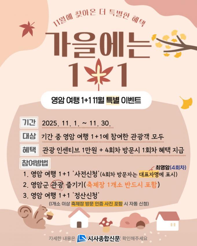 ¿µ¾Ï±º(±º¼ö ¿ì½ÂÈñ)ÀÌ Áö¿ª ÃàÁ¦ °³ÃÖ¿Í ¿¬°èÇØ 11¿ù ÇÑ ´Þ ¡®¿µ¾Ï¿©Çà 1+1 Ưº°À̺¥Æ®¡¯·Î Áö¿ªÈÆó ¿ùÃâÆäÀ̸¦ 1¸¸¿ø Ãß°¡ Áö±ÞÇÑ´Ù.