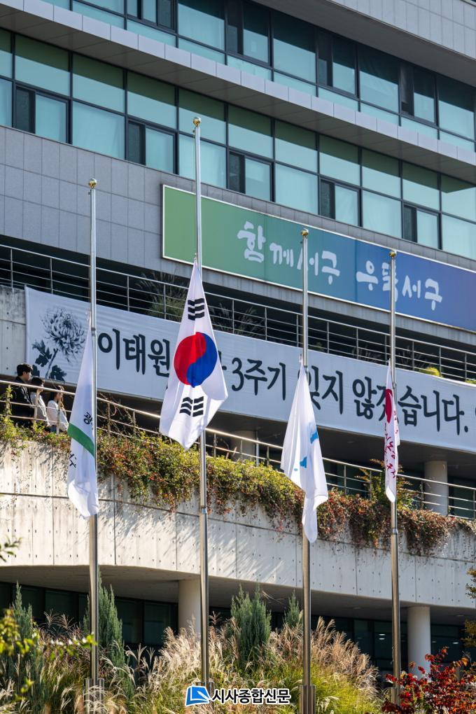 [½Ã»çÁ¾ÇսŹ® = ¿À½ÂÅà ±âÀÚ] ±¤ÁÖ ¼±¸(±¸Ã»Àå ±èÀ̰)´Â 29ÀÏ 10¡¤29 ÀÌÅ¿ø Âü»ç 3Áֱ⸦ ¸Â¾Æ Èñ»ýÀÚµéÀ» ±â¸®°í ¾ÈÀüÇÑ »çȸ¸¦ ±â¿øÇÏ´Â Ã߸ð Çö¼ö¸·°ú Á¶±â¸¦ °Ô¾çÇß´Ù.