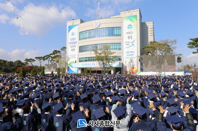 ÇÑÆí À̳¯ ÁøÇàµÈ ¼ö·á½ÄÀº ¡®»ç¶û°ú Ãູ, ¼¼°è¸¦ ºñÃß´Â ºû¡¯À» ÁÖÁ¦·Î ÁøÇàµÆ´Ù. ½ÅõÁö ûÁÖ±³È¸ ³»¿ÜºÎ¿¡ 2¸¸¿© ¼ö·á»ýµéÀÌ °¡µæ ÀÚ¸®¸¦ ä¿ü°í, °ø°£ÀÌ Çù¼ÒÇØ ³ª¸ÓÁö ¼ö·á»ýµéÀº ±¹³»¿Ü ½ÅõÁö¿¹¼ö±³È¸¿¡ Èð¾îÁ® ¿Â¶óÀÎÀ¸·Î µ¿ÂüÇϸç ÃàÇÏÀÇ ¿±â¸¦ ´õÇß´Ù.