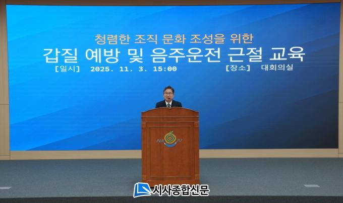 ³ªÁÖ½Ã(½ÃÀå À±º´ÅÂ)´Â Áö³ 3ÀÏ ½Ãû ´ëȸÀǽǿ¡¼ Àü Á÷¿øÀÌ Âü¼®ÇÑ °¡¿îµ¥ ¡®°©Áú ¿¹¹æ ¹× À½ÁÖ¿îÀü ±ÙÀý ±³À°¡¯À» ÁøÇàÇß´Ù°í 4ÀÏ ¹àÇû´Ù. À̹ø ±³À°Àº û·ÅÇϰí Á¸Áß¹Þ´Â °øÁ÷¹®È¸¦ Á¤Âø½Ã۱â À§ÇÑ Áö¼ÓÀûÀÎ ³ë·ÂÀÇ ÀÏȯÀÌ´Ù.