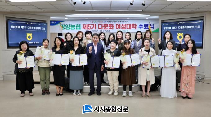 ±¤¾ç³óÇùÀº 2019³â ÇØ´ç »ç¾÷À» ½ÃÀÛÇÑ ÀÌ·¡ ²ÙÁØÈ÷ ´Ù¹®È¿©¼º ±³À°À» À̾î¿À°í ÀÖÀ¸¸ç, À̹ø 5±â ¼ö·á·Î Áö¿ª ´Ù¹®È °¡Á¤ÀÇ ¾ÈÁ¤ÀûÀÎ Á¤ÂøÀ» Áö¿øÇÏ´Â ÀÏ·ÃÀÇ ³ë·ÂÀÌ °è¼ÓµÇ°í ÀÖÀ½À» ÀüÇß´Ù. ƯÈ÷ ¼ö·á»ýµéÀº ±³À°°úÁ¤¿¡¼ ÀÍÈù Çѱ¹¾î¡¤»ýȰ±â¼úÀ» ¹ÙÅÁÀ¸·Î ÀÏ»ó»ýȰ¿¡¼ÀÇ ÀÚ¸³°ú °¡Á·»ýȰ ÀûÀÀ¿¡ ½ÇÁúÀû µµ¿òÀ» ¹Þ°í ÀÖ´Ù°í ÀüÇß´Ù.