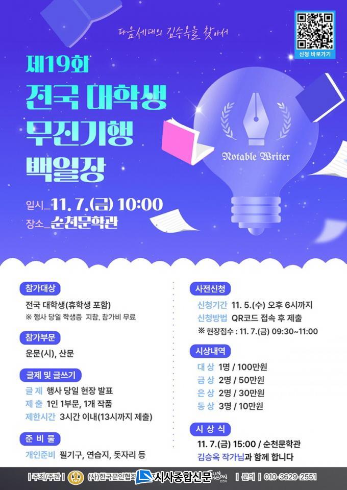 À̹ø ¹éÀÏÀåÀº ¼øÃµ Ãâ½ÅÀÇ ¼Ò¼³°¡ ±è½Â¿Á ÀÛ°¡ÀÇ ¹®ÇÐÁ¤½ÅÀ» ±â¸®°í, Àü±¹ÀÇ ´ëÇлýµé¿¡°Ô ¹®ÇÐÀû »ó»ó·Â°ú âÀÛÀÇ ¿Á¤À» ÆîÄ¥ ±âȸ¸¦ Á¦°øÇϱâ À§ÇØ ¸¶·ÃµÆ´Ù.