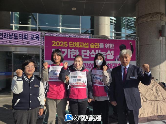[½Ã»çÁ¾ÇսŹ® = ¿À½ÂÅà ±âÀÚ] Àü¶ó³²µµÀÇȸ ¹ÚÇü´ë ÀÇ¿ø(Áøº¸´ç¡¤ÀåÈï1)Àº 11¿ù 5ÀÏ Àü¶ó³²µµ±³À°Ã» ¾ÕÀ» ã¾Æ Çб³ºñÁ¤±ÔÁ÷ ´Üü±³¼· Á¶¼Ó Ÿ°áÀ» ¿ä±¸Çϸç 13Àϰ ³ë¼÷ ´Ü½Ä³ó¼ºÀ» À̾°í ÀÖ´Â ³ëµ¿Á¶ÇÕ °£ºÎµéÀ» À§·ÎÇß´Ù.