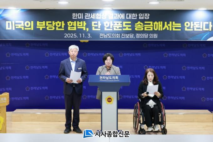 [½Ã»çÁ¾ÇսŹ® = ¿À½ÂÅà ±âÀÚ] Àü¶ó³²µµÀÇȸ ¿À¹ÌÈ ÀÇ¿ø(Áøº¸´ç¡¤¿µ±¤2)À» ºñ·ÔÇÑ Áøº¸´ç¤ýÁ¤ÀÇ´ç ¼Ò¼Ó ÀÇ¿øµéÀº Áö³ 11¿ù 3ÀÏ, Àü³²µµÀÇȸ ºê¸®Çη뿡¼ ±âÀÚȸ°ßÀ» ¿°í, ¡®10¤ý29 ÇÑ¹Ì °ü¼¼ Çù»ó Ÿ°á¡¯¿¡ ´ëÇÑ °øµ¿ ÀÔÀå¹®À» ¹ßÇ¥Çß´Ù.