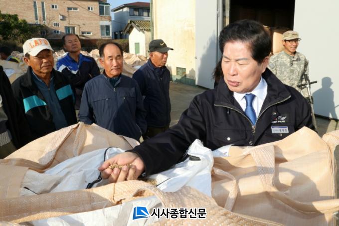 À̳¯ ÇöÀåÀ» ãÀº °ø¿µ¹Î ±º¼ö´Â º³ó»ç ÀÛȲ »óŸ¦ Á¡°ËÇϰí, ½Ò°ª ºÒ¾È°ú ¼Òºñ °¨¼Ò µîÀ¸·Î ¾î·Á¿òÀ» °Þ´Â º Àç¹è ³ó°¡µéÀÇ ¾Ö·Î»çÇ×À» ûÃëÇÏ°í ³ó¾÷ÀÎÀ» °Ý·ÁÇß´Ù.