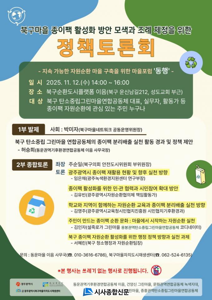 À̹ø Á¤Ã¥Åä·Ðȸ´Â 2024~2025³â ºÏ±¸ ź¼ÒÁ߸³ °ø°øÀÇÁ¦ÀÎ ¡®Á¾ÀÌÆÑ ¿Ã¹Ù¸£°Ô ºÐ¸®¹èÃâÇϱ⡯ÀÇ ¼º°ú¸¦ °øÀ¯Çϰí, ¹Î¡¤°ü¡¤Á¤ÀÌ Çù·ÂÇÏ¿© Á¾ÀÌÆÑ ÀÚ¿ø¼øÈ¯ÀÌ Á¦µµÀûÀ¸·Î Á¤ÂøµÉ ¼ö ÀÖµµ·Ï ±¸Ã¼ÀûÀÎ ¹æ¾ÈÀ» ³íÀÇÇϱâ À§ÇØ ¸¶·ÃµÆ´Ù.