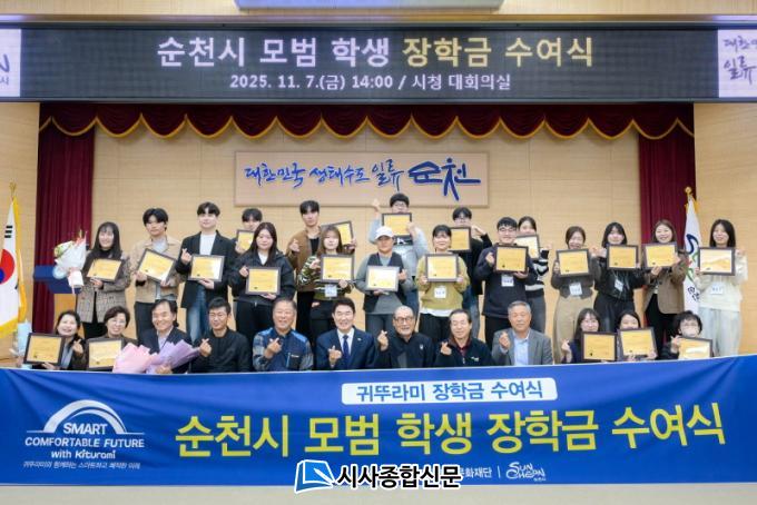 ÀåÇÐ±Ý ¼ö¿©½Ä¿¡´Â ÀåÇлý ¹× Çкθð µî 70¿© ¸íÀÌ Âü¼®ÇßÀ¸¸ç, ½Ã´Â Áö¿ª ³» ±¹¸³¼øÃµ´ëÇб³, û¾Ï´ëÇб³, ¼øÃµÁ¦ÀÏ´ëÇб³ 3°³ ´ëÇп¡¼ Ãßõ¹ÞÀº Çлý 25¸í¿¡°Ô °¢ 2¹é¸¸¿ø¾¿, ÃÑ 5õ¸¸¿øÀÇ ÀåÇбݰú ÀåÇÐÁõ¼¸¦ Àü´ÞÇß´Ù.