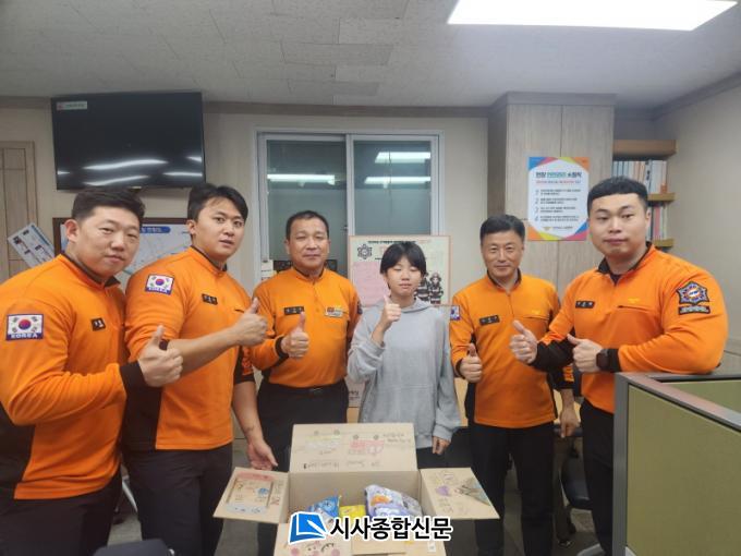 [½Ã»çÁ¾ÇսŹ® = Àå¹Î±Ô ±âÀÚ] 11¿ù 7ÀÏ ±¤¾ç¼Ò¹æ¼ Á߸¶119¾ÈÀü¼¾ÅÍ ¼Ò¹æ°üµé¿¡°Ô ±ô¦ ¼±¹°ÀÌ Ã£¾Æ¿Ô´Ù. ±¤¾ç Áß¾ÓÃÊ 6Çгâ ÀåÁÖºó ÇлýÀÌ ¼Ò¹æÀdz¯À» ±â³äÇÏ¿© ¼Ò¹æ°ü¿¡°Ô °¨»çÀÇ ÆíÁö¿Í À§¹®Ç° µîÀ» Àü´ÞÇÏ¿´´Ù.