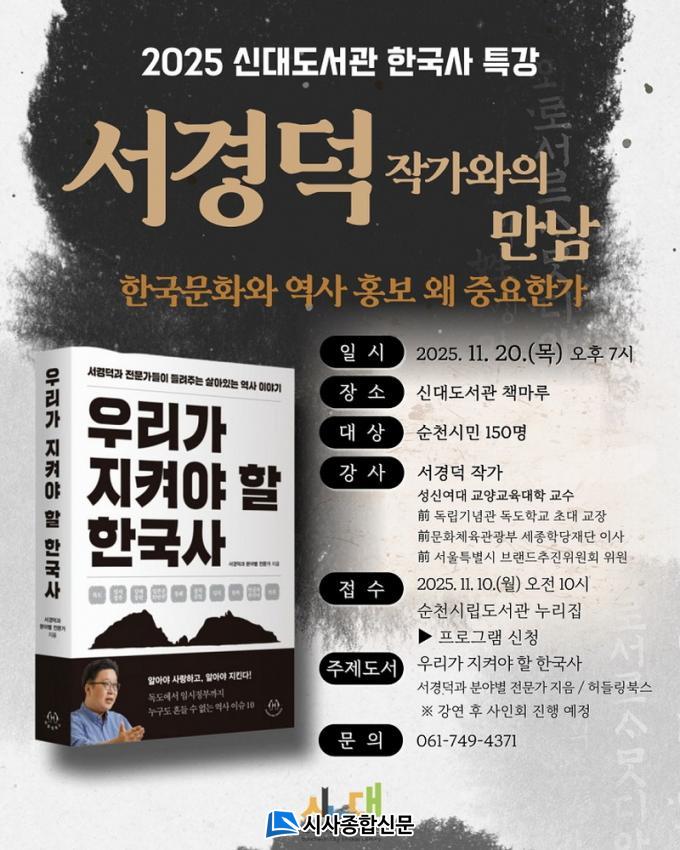 À̹ø °¿¬¿¡¼´Â ¡®Çѱ¹ ¾Ë¸®¹Ì¡¯·Î ºÒ¸®´Â ¼ ±³¼öÀÇ »ý»ýÇÑ °æÇè´ãÀ» ¹ÙÅÁÀ¸·Î, ±×ÀÇ ÃֽŠÀú¼ ¿ì¸®°¡ ÁöÄÑ¾ß ÇÒ Çѱ¹»ç¸¦ ÅëÇØ Çѱ¹ ¹®È¿Í ¿ª»ç¸¦ ¿Ã¹Ù¸£°Ô ÀÌÇØÇÏ°í ¿ª»ç ¿Ö°îÀÇ º»ÁúÀ» ¤¾îº¸´Â ½Ã°£À» ¸¶·ÃÇÒ ¿¹Á¤ÀÌ´Ù.