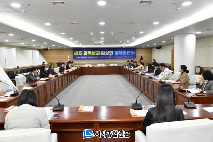 ±¤ÁÖ±¤¿ª½ÃÀÇȸ ¹ÚÇʼø ÀÇ¿ø°ú ±¤ÁÖ°æÁ¦ÁøÈï»ó»ýÀÏÀÚ¸®Àç´ÜÀº Áö³ 17ÀÏ ½ÃÀÇȸ ´ëȸÀǽǿ¡¼ ¡®±¤ÁÖ °ñ¸ñ»ó±Ç Ȱ¼ºÈ Á¤Ã¥Åä·Ðȸ¡¯¸¦ °³ÃÖÇß´Ù.