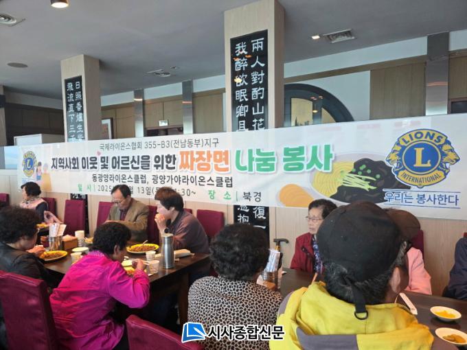 Çà»ç¿¡´Â ±¤¾ç °¡¾ß¶óÀ̿½ºÅ¬·´°ú µ¿±¤¾ç ¶óÀ̿½ºÅ¬·´ ȸ¿ø 15¸íÀÌ Âü¿©ÇØ ¾î¸£½ÅµéÀÇ ½Ä»ç ÀÚ¸®¸¦ »ìÇÇ°í ¾ÈºÎ¸¦ ÀüÇÏ¸ç ¿ÂÁ¤À» ³ª´³´Ù.
