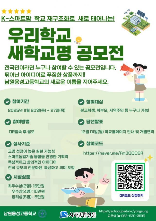 | ³²¿ø¿ë¼º°íµîÇб³, ¿ì¸®Çб³ »õÇб³¸í °ø¸ðÀü ÃßÁø ¡°K-½º¸¶Æ®ÆÊÀÇ ²Þ ´ãÀº À̸§À» Áö¾î ÁÖ¼¼¿ä"