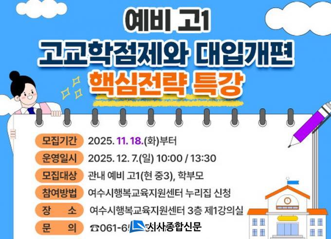 Âü¿©¸¦ Èñ¸ÁÇÏ´Â Çлý°ú Çкθð´Â ¿©¼ö½ÃÇູ±³À°Áö¿ø¼¾ÅÍ ´©¸®Áý(www.yeosu.go.kr/edu)À» ÅëÇØ ½ÅûÇÒ ¼ö ÀÖÀ¸¸ç ½ÅûÀº Áö³ 18ÀϺÎÅÍ ¹Þ°í ÀÖ´Ù. Âü¿©ÇÑ ¸ðµç Çлý¿¡°Ô´Â °í±³ÇÐÁ¡Á¦ ÃֽŠÀÚ·áÁý°ú ±â³äǰÀÌ Á¦°øµÈ´Ù.