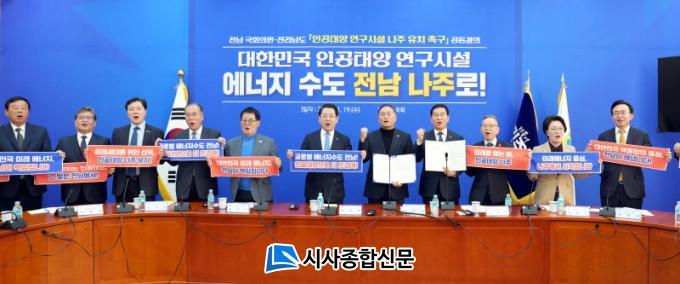 Àü³²µµ´Â À̳¯ ±è¿µ·Ï µµÁö»ç, ±è¿øÀÌ ¹ÎÁÖ´ç Àü³²µµ´çÀ§¿øÀå, ½ÅÁ¤ÈÆ ±¹È¸ ÇàÁ¤¾ÈÀüÀ§¿øÀå, ¹ÚÁö¿ø¡¤À̰³È£¡¤Á¶°è¿ø¡¤±è¹®¼ö¡¤±ÇÇ⿱ ±¹È¸ÀÇ¿ø°ú À±º´Å ³ªÁÖ½ÃÀå µîÀÌ Âü¼®ÇÑ °¡¿îµ¥ ±¹È¸ ¹ÎÁÖ´ç ¿ø³»´ëÇ¥ ȸÀǽǿ¡¼ ¡®ÀΰøÅÂ¾ç ¿¬±¸½Ã¼³ Àü³² ³ªÁÖ À¯Ä¡ Àü³² ±¹È¸ÀÇ¿ø °øµ¿°áÀǹ®¡¯À» ¹ßÇ¥Çß´Ù. ¿ÀÈÄ¿¡´Â ±¤ÁÖ¸¦ Áö¿ª±¸·Î µÐ ¾Èµµ°É¡¤ÀüÁø¼÷¡¤Á¤ÁØÈ£ ±¹È¸ÀÇ¿ø°ú ±¹È¸ ¼ÒÅë°ü¿¡¼ °øµ¿°áÀǹ®À» ¹ßÇ¥, ÀΰøÅÂ¾ç ¿¬±¸½Ã¼³ À¯Ä¡ ³ë·Â¿¡ ÈûÀ» ½Ç¾ú´Ù.