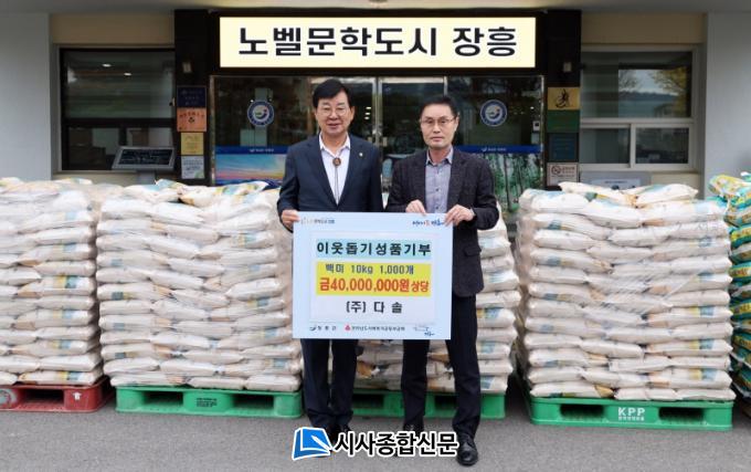 [½Ã»çÁ¾ÇսŹ® = ¿À½ÂÅà ±âÀÚ] (ÁÖ)´Ù¼Ö(´ëÇ¥ ³ëÁ¤±Ù, ¹Úö¿Ï)Àº Áö³ 19ÀÏ, Áö¿ª»çȸ ³ª´® ½ÇõÀÇ ÀÏȯÀ¸·Î ¹é¹Ì 10kg 1,000Æ÷(¾à 4õ¸¸¿ø »ó´ç)¸¦ ÀåÈﱺ¿¡ ±âŹÇß´Ù.