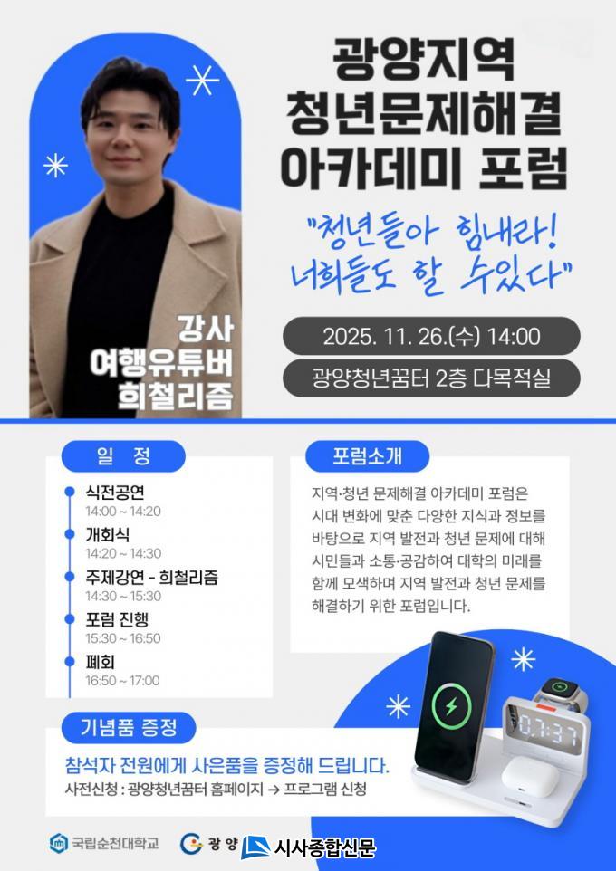 Á¶µ¿¼ö ±¤¾ç½Ã û³âÀÏÀÚ¸®°úÀåÀº ¡°¼øÃµ´ëÇб³°¡ ±Û·ÎÄôëÇÐ30 »ç¾÷À» ÅëÇØ û³â ¹®Á¦¸¦ ÇÔ²² ³íÀÇÇÒ ¼ö ÀÖ´Â ÀÚ¸®¸¦ ¸¶·ÃÇØ ¶æ±í°Ô »ý°¢ÇÑ´Ù¡±¸ç ¡°À̹ø Æ÷·³ÀÌ Ã»³âµéÀÌ °Þ´Â ¾î·Á¿òÀ» °øÀ¯ÇÏ°í ½ÇÁúÀûÀÎ ÇØ¹ýÀ» ã´Â ¼ÒÁßÇÑ °è±â°¡ µÇ±æ ¹Ù¶õ´Ù¡±°í ¸»Çß´Ù.