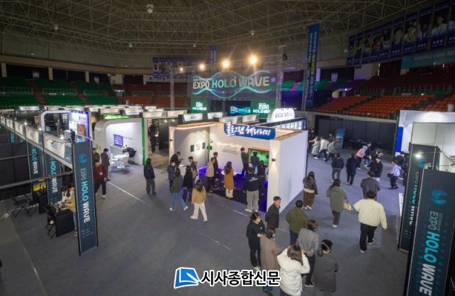 '¹Ì·¡¸¦ ¹àÈ÷´Â ºûÀÇ ¹°°á, HOLO WAVE'¸¦ ÁÖÁ¦·Î ¿¸° ¿¢½ºÆ÷´Â Ȧ·Î±×·¥ ±â¼ú¡¤¹®È¡¤»ê¾÷À» ¾Æ¿ì¸£´Â Á¾ÇÕÇü ÄÜÅÙÃ÷¸¦ ¼±º¸À̸ç, ÀÍ»ê½Ã°¡ ÃßÁøÇØ ¿Â Ȧ·Î±×·¥ »ê¾÷ À°¼º ¼º°ú¸¦ ÁýÁßÀûÀ¸·Î º¸¿©ÁÖ´Â Çà»ç·Î Æò°¡¹Þ¾Ò´Ù. ÇöÀå¿¡¼´Â ¡âVR µå·ÎÀ× ¼î ¡âȦ·Î±×·¥ ¸¶¼ú°ø¿¬ ¡âȦ·Î±×·¥ ±×·¡ÇÈ ¿µ»óÀü½Ã µî ´Ù¾çÇÑ ÄÜÅÙÃ÷°¡ À̾îÁö¸ç °ü¶÷°´ÀÇ À̸ñÀ» ÁýÁß½ÃÄ×´Ù.