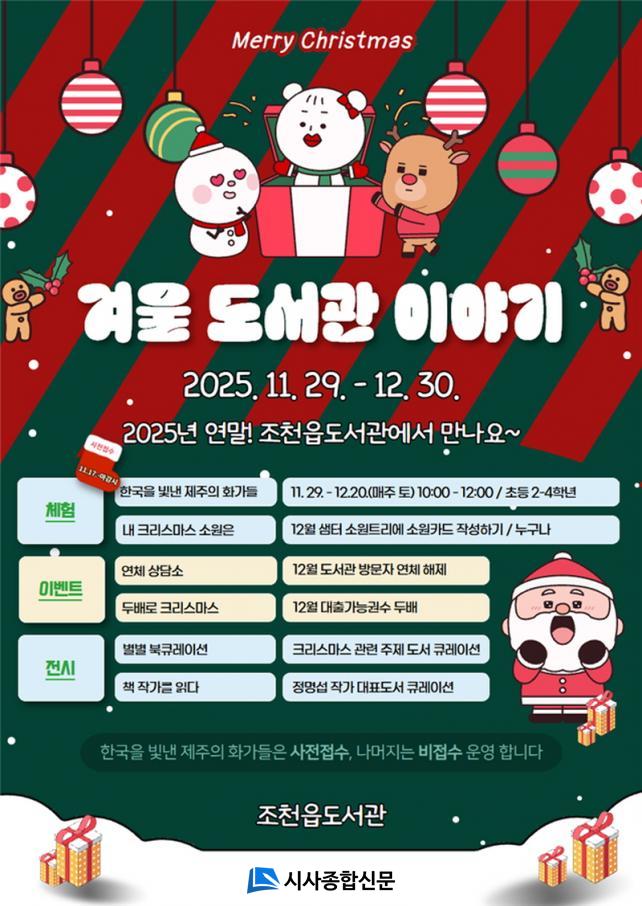 ¶ÇÇÑ, 12¿ù¿¡ ¾î¿ï¸®´Â ÁÖÁ¦ÀÎ Å©¸®½º¸¶½º, °Ü¿ï °£½Ä µî Å׸¶º° ºÏÅ¥·¹À̼ǰú ÇÔ²² Çѱ¹Ã߸®¹®Çдë»ó ¼ö»ó ÀÛ°¡ÀÎ Á¤¸í¼· ÀÛ°¡ÀÇ ´ëÇ¥ µµ¼ Àü½Ã¸¦ ÅëÇØ ½Ã¹ÎÀÇ µ¶¼ Àúº¯ È®´ë¿¡µµ Èû¾µ ¿¹Á¤ÀÌ´Ù.