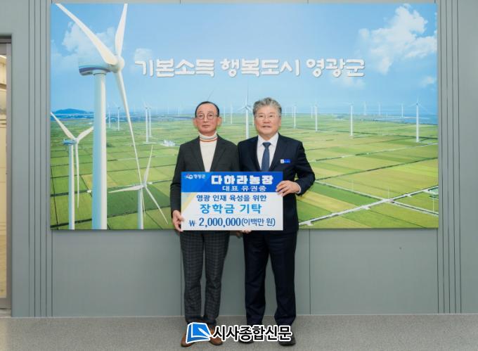 [½Ã»çÁ¾ÇսŹ® = ¿À½ÂÅà ±âÀÚ] ´ÙÇ϶ó³óÀå(´ëÇ¥ À¯±ÇÁß)Àº 11¿ù 26ÀÏ ¿µ±¤±ºÃ»À» ¹æ¹®ÇØ ¿µ±¤±ºÀÎÀçÀ°¼º±â±ÝÀ¸·Î ÀåÇÐ±Ý 2¹é¸¸ ¿øÀ» ±âŹÇß´Ù.