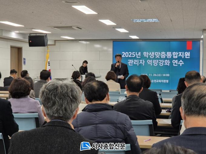 [½Ã»çÁ¾ÇսŹ® = Àå¹Î±Ô ±âÀÚ] ¼øÃµ±³À°Áö¿øÃ»(±³À°Àå Ç㵿±Õ)Àº 11¿ù 26ÀÏ(¼ö), ¡¸Çлý¸ÂÃãÅëÇÕÁö¿ø Çб³ °ü¸®ÀÚ ¿ª·®°È ¿¬¼ö¡¹¸¦ ½Ç½ÃÇØ, 2026³â Àü¸é ½ÃÇàÀ» ¾ÕµÐ Çлý¸ÂÃãÅëÇÕÁö¿ø Á¤Ã¥ÀÌ Çб³ ÇöÀå¿¡ ¾ÈÁ¤ÀûÀ¸·Î ¾ÈÂøµÉ ¼ö ÀÖµµ·Ï Çб³ÀåÀÇ ½ÇÇà ¿ª·®À» °ÈÇß´Ù°í ¹àÇû´Ù.