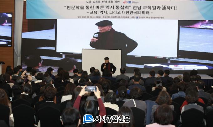 Àü¶ó³²µµ±³À°Ã»ÀÌ 26ÀÏ ¿©¼ö µð¿À¼Ç¸®Á¶Æ®¿¡¼ °³ÃÖÇÑ Àι®ÇÐ °¿¬È¸¿¡¼ µµ¿Ã ±è¿ë¿Á ¼±»ýÀº AI ½Ã´ëÀÇ ±³À°ÀÌ ³ª¾Æ°¡¾ß ÇÒ ¹æÇâÀ» À̰°ÀÌ Á¦½ÃÇß´Ù. ¡®±³À°, ¿ª»ç, ±×¸®°í ´ëÇѹα¹ÀÇ ¹Ì·¡¡¯¸¦ ÁÖÁ¦·Î ÇÑ À̹ø °¿¬¿¡´Â Àü³² ÃÊ¡¤Áß¡¤°í ±³Á÷¿ø°ú Çкθð 500¿© ¸íÀÌ Âü¼®ÇØ °ü½ÉÀ» ¸ð¾Ò´Ù.