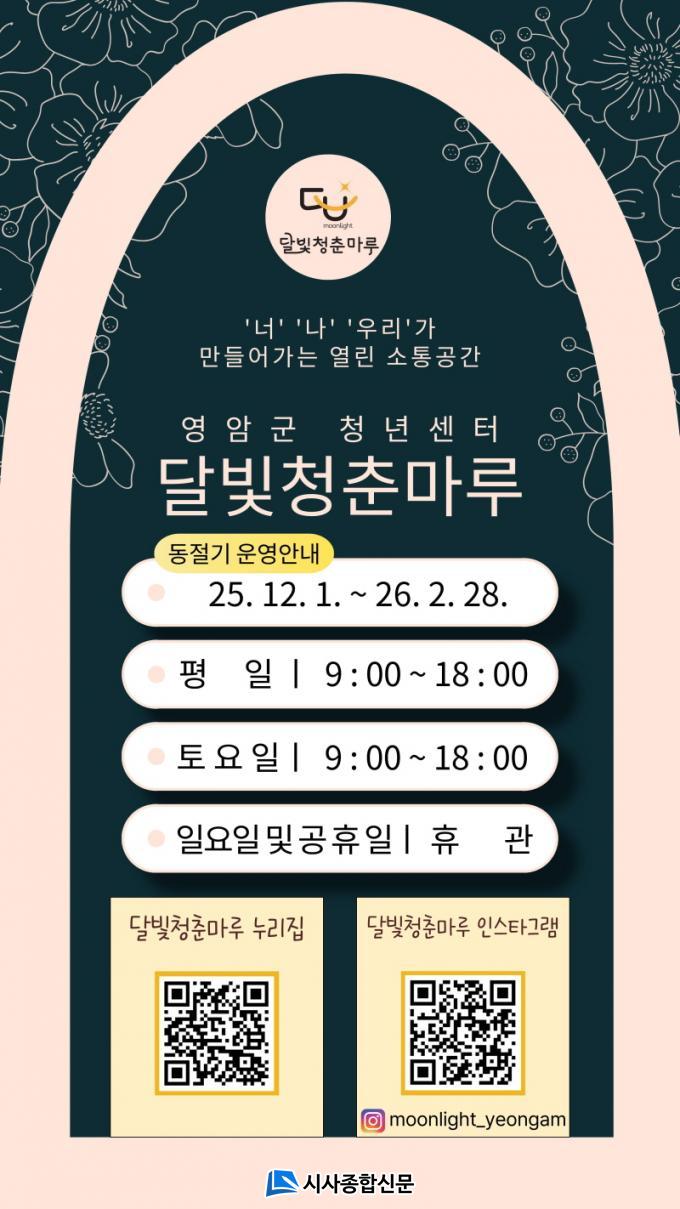 ´ÞºûûÃḶ·ç´Â ¿µ¾Ï±º û³âÁ¤Ã¥ÀÇ Á᫐ °ø°£À¸·Î, ȸÀǽǡ¤°øÀ¯¶ó¿îÁö¡¤Ã¢ÀÛ½Ç µî ´Ù¾çÇÑ ½Ã¼³¿¡¼ û³â ¸ðÀÓ, ¿ª·®±³À°, ÇÁ·ÎÁ§Æ® Ȱµ¿ µîÀÌ È°¹ßÈ÷ À̾îÁö°í ÀÖ´Ù. ¿ÃÇØ 3¿ùºÎÅÍ ¿ÀÀü 9½ÃºÎÅÍ Àú³á 9½Ã±îÁö ¿î¿µÇØ ¿À´ø ¼¾ÅÍ °³¹æ ½Ã°£À» ¿ÀÈÄ 6½Ã±îÁö·Î º¯°æÇÑ °Í.