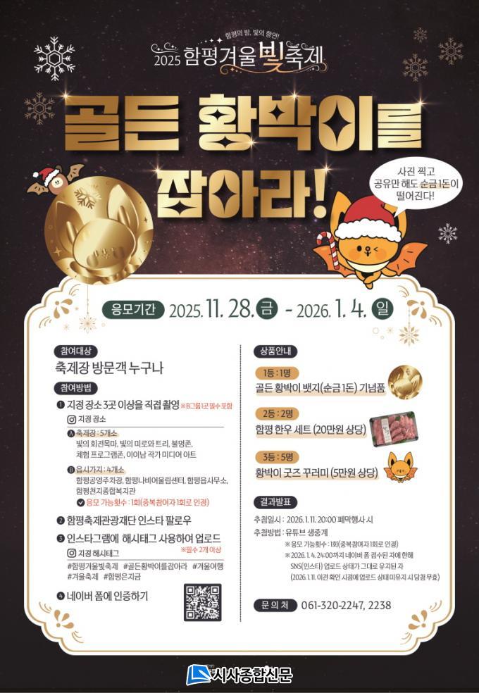 ÇÔÆòÃàÁ¦°ü±¤Àç´ÜÀº °Ü¿ïºûÃàÁ¦¸¦ ã´Â °ü±¤°´µé¿¡°Ô »ö´Ù¸¥ Àç¹Ì¸¦ Á¦°øÇϱâ À§ÇØ »çȸ°ü°è¸Á¼ºñ½º(SNS) Âü¿©Çü À̺¥Æ® ¡®°ñµç Ȳ¹ÚÀ̸¦ Àâ¾Æ¶ó!¡¯¸¦ ³»³â 1¿ù 4ÀÏ 24½Ã±îÁö ÁøÇàÇÑ´Ù°í 27ÀÏ ¹àÇû´Ù. Çà»ç´Â Ãß÷ÀÇ °øÁ¤¼ºÀ» À§ÇØ ÀνºÅ¸±×·¥¿¡¼¸¸ Âü¿©ÇÒ ¼ö ÀÖ´Ù.