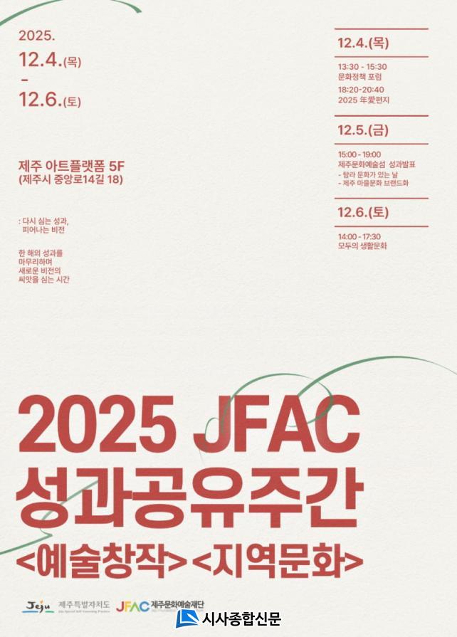 [½Ã»çÁ¾ÇսŹ® = °í¼º¹Î ±âÀÚ] Á¦ÁÖ¹®È¿¹¼úÀç´Ü(ÀÌ»çÀå ±è¼®À±, ÀÌÇÏ Àç´Ü)Àº <´Ù½Ã ½É´Â ¼º°ú, ÇǾ´Â ºñÀü>À̶ó´Â ½½·Î°ÇÀ¸·Î ¡¸2025³â Àç´Ü ¼º°ú°øÀ¯ÁÖ°£(ÀÌÇÏ ¼º°ú°øÀ¯ÁÖ°£)¡¹À» °³ÃÖÇÑ´Ù. ÇÁ·Î±×·¥Àº Á¦ÁÖ¾ÆÆ®Ç÷§Æû(5Ãþ)¿¡¼ 12¿ù 4ÀÏ(¸ñ)ºÎÅÍ 6ÀÏ(Åä)±îÁö 3Àϰ£ ÁøÇàµÈ´Ù.