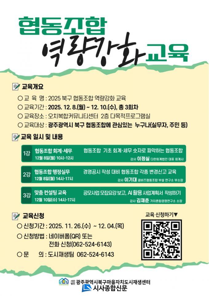 [½Ã»çÁ¾ÇսŹ® = ¿À½ÂÅà ±âÀÚ] (»ç)±¤ÁÖ±¤¿ª½ÃºÏ±¸¸¶À»ÀÚÄ¡µµ½ÃÀç»ý¼¾ÅÍ(ÀÌÇÏ ¡®ºÏ±¸¸¶À»¼¾ÅÍ¡¯)´Â 12¿ù 8ÀϺÎÅÍ 10ÀϱîÁö ÃÑ 3ȸ °úÁ¤À¸·Î Çùµ¿Á¶ÇÕÀÇ ¿î¿µ ±â´É °È¿Í ÀÚ»ý·Â Çâ»óÀ» Áö¿øÇϱâ À§ÇØ ¡®2025 Çùµ¿Á¶ÇÕ ¿ª·®°È ±³À°¡¯À» ¿î¿µÇÑ´Ù.