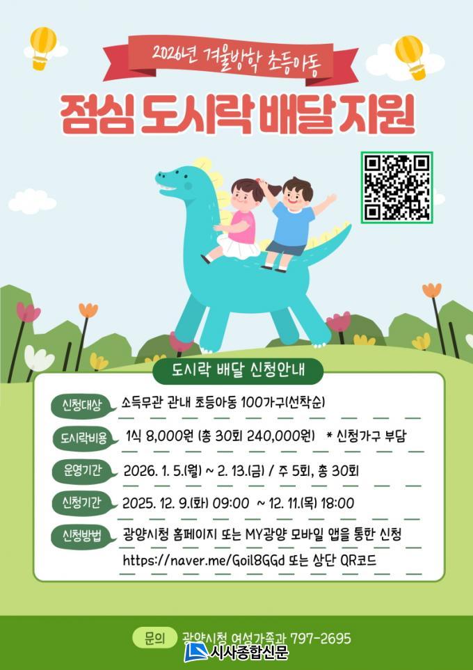 ½Åû ±â°£Àº 12¿ù 9ÀÏ ¿ÀÀü 9½ÃºÎÅÍ 11ÀÏ ¿ÀÈÄ 6±îÁöÀ̸ç, ±¤¾ç½Ãû ´©¸®Áý(ȨÆäÀÌÁö) ¶Ç´Â ¡®MY±¤¾ç¡¯ ¾ÛÀ» ÅëÇØ ½Åû °¡´ÉÇÏ´Ù. ¾È³» Æ÷½ºÅÍ¿¡ Æ÷ÇÔµÈ QRÄÚµå ¶Ç´Â ¸ð¹ÙÀÏ ¸µÅ©(https://naver.me/Goil8GGd)¸¦ Ȱ¿ëÇÏ¸é °£ÆíÇÏ°Ô Á¢¼öÇÒ ¼ö ÀÖ´Ù.