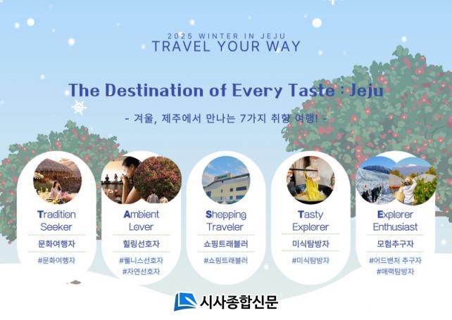 ¿Ã °Ü¿ï 7°¡Áö Á¦ÁÖ ÃëÇâ ¿©ÇàÀº ¡â¹®È¿©ÇàÀÚ(Á¦ÁÖ ¿ª»ç¡¤¹®È °ü¶÷¼±È£) ¡âÀ£´Ï½º¼±È£ÀÚ(°Ü¿ï Â÷(ó±), ½ºÆÄ À£´Ï½º Ȱµ¿ ¼±È£) ¡âÀÚ¿¬¼±È£ÀÚ(°Ü¿ï µ¿¹é, ÇѶó»ê ´«²É °èÀý ÀÚ¿¬ ¼±È£) ¡â¼îÇÎÆ®·¹ºí·¯(Áö¿ª Çϳª·Î¸¶Æ® ·ÎÄà ¼îÇÎ °æÇè Ãß±¸) ¡â¹Ì½Ä޹æÀÚ(°Ü¿ï Á¦Ã¶À½½Ä, ÈÞ°Ô¼Ò À½½Ä ¼±È£) ¡â¾îµåº¥Ã³Ãß±¸ÀÚ(°Ü¿ï ÇÏÀÌÅ·, ÇØ¾ç üÇè Ãß±¸) ¡â¸Å·Â޹æÀÚ(Áö¿ª·ÎÄà ¸¶À» ޹æ Ãß±¸)ÀÌ´Ù.