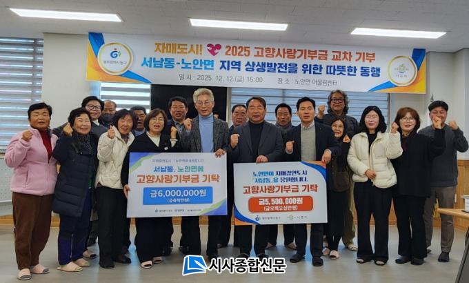 À̳¯ ³ë¾È¸éÀº ¼³²µ¿¿¡ 550¸¸ ¿øÀ», ¼³²µ¿Àº ³ë¾È¸é¿¡ 600¸¸ ¿øÀÇ °íÇâ»ç¶û±âºÎ±ÝÀ» »óÈ£ Àü´ÞÇÏ°í ¾ç Áö¿ª °£ÀÇ ²ÙÁØÇÑ ¿ìÁ¤°ú Çù·Â °ü°è¸¦ ÀçÈ®ÀÎÇß´Ù. À̳¯ Çà»ç´Â °íÇâ»ç¶û±âºÎ±Ý Àü´Þ½Ä, ±â³ä ÃÔ¿µ, 2026³â ÀڸŰῬ»ç¾÷ ÃßÁø ¹æÇâ ³íÀÇ µîÀÌ ÀÌ·ç¾îÁ³´Ù.