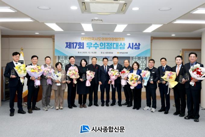 [½Ã»çÁ¾ÇսŹ® = ¿À½ÂÅà ±âÀÚ] Àü¶ó³²µµÀÇȸ(ÀÇÀå ±èűÕ)´Â 12¿ù 16ÀÏ µµÀÇȸ ȸÀǽǿ¡¼ ´ëÇѹα¹½ÃµµÀÇȸÀÇÀåÇùÀÇȸ°¡ ÁÖ°üÇÑ ¡®Á¦17ȸ ¿ì¼öÀÇÁ¤´ë»ó¡¯ ½Ã»ó½ÄÀ» °³ÃÖÇϰí, ¿ÃÇØ ¼ö»óÀÚ·Î ¼±Á¤µÈ µµÀÇ¿ø 13¸í¿¡°Ô »óÆÐ¸¦ Àü¼öÇß´Ù.