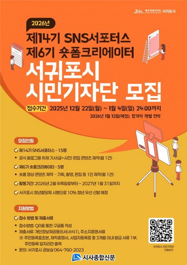 ¸ðÁý ´ë»óÀº SNS¼Æ÷Åͽº 15¸í, ¼ôÆûÅ©¸®¿¡ÀÌÅÍ 5¸í µî ÃÑ 20¸í ³»¿Ü·Î, ¼±ÍÆ÷½ÃÀÇ Á¤Ã¥¡¤Çà»ç¡¤¹®È¡¤°ü±¤ µî ´Ù¾çÇÑ ½ÃÁ¤ ¼Ò½ÄÀ» ½Ã¹ÎÀÇ ½Ã¼±À¸·Î ÄÜÅÙÃ÷¸¦ Á¦ÀÛÇÏ°Ô µÈ´Ù, ¸ðÁý ±â°£Àº 2025³â 12¿ù 22ÀϺÎÅÍ 2026³â 1¿ù 4ÀϱîÁöÀ̸ç, Áö¿øÀº ¿Â¶óÀÎ ±¸±ÛÆûÀ» ÅëÇØ °¡´ÉÇÏ´Ù. ÃÖÁ¾ ÇÕ°ÝÀÚ´Â 2026³â 1¿ù 12ÀÏ °³º° Å뺸ÇÒ ¿¹Á¤ÀÌ´Ù.